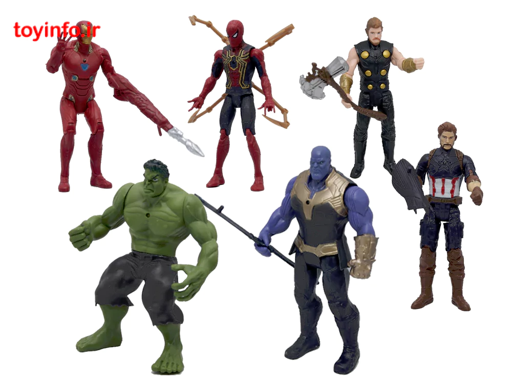 - Thanos (تانوس): ضدقهرمان اصلی با زره طلایی و دستکش بینهایت و قد تقریبی 16cm