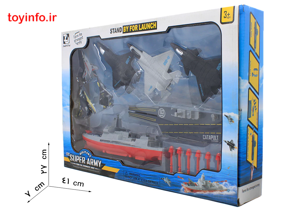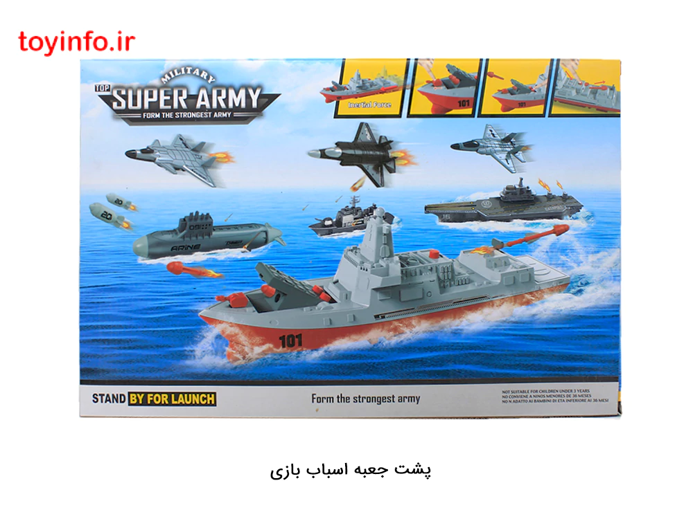 با مجموعه نظامی “SUPER ARMY”، دنیایی از نبردهای استراتژیک، ماموریتهای جسورانه و ماجراهای هیجانانگیز را به اتاق فرزند خود بیاورید. اسباب بازی مجموعه ناوگان جنگی نیروی دریایی یک ست نظامی بسیار جذاب شامل 8 وسیله رزمی دریایی و هوایی است. این مجموعه مجهز به کشتی فرماندهی با قابلیت پرتاب تیرها برای نبردی تمامعیار میباشد.